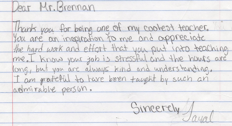 I was honored to receive these and other letters from my students.